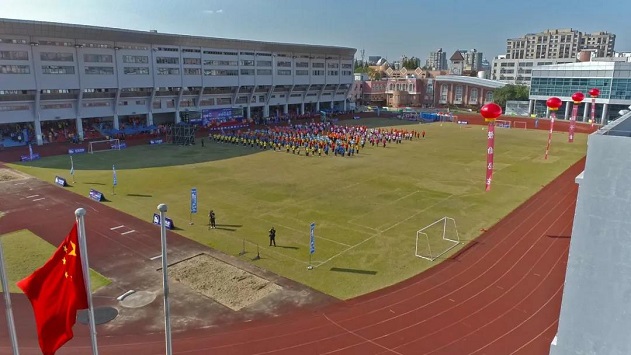此时绿茵场上,方阵队伍列队完毕,操场上摆出巨型芯片造型,动作整齐划一,场面生动震撼。